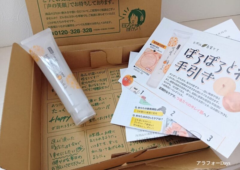 ぽろぽろとれる杏ジェルが届きました。入っていたのは、本品1つ・ぽろぽろとれる手引き・使い方ガイドなどです。梱包はとても丁寧で好印象でした。(※実際の梱包とは異なる場合があります)