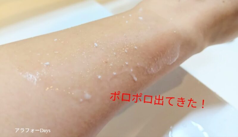 ちなみに、腕でやるとぽろぽろが物足りない感じですが、顔やデコルテはすっごい取れます!!